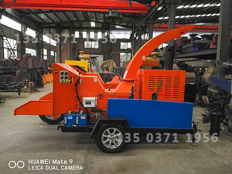 木料由進(jìn)料口送入,當(dāng)木料接觸到切割刀片時(shí),隨著粉碎刀盤的高速旋轉(zhuǎn)進(jìn)行削切,所切的木片在粉碎室內(nèi)由粉碎刀盤上的風(fēng)葉所產(chǎn)生的高速汽流送出。